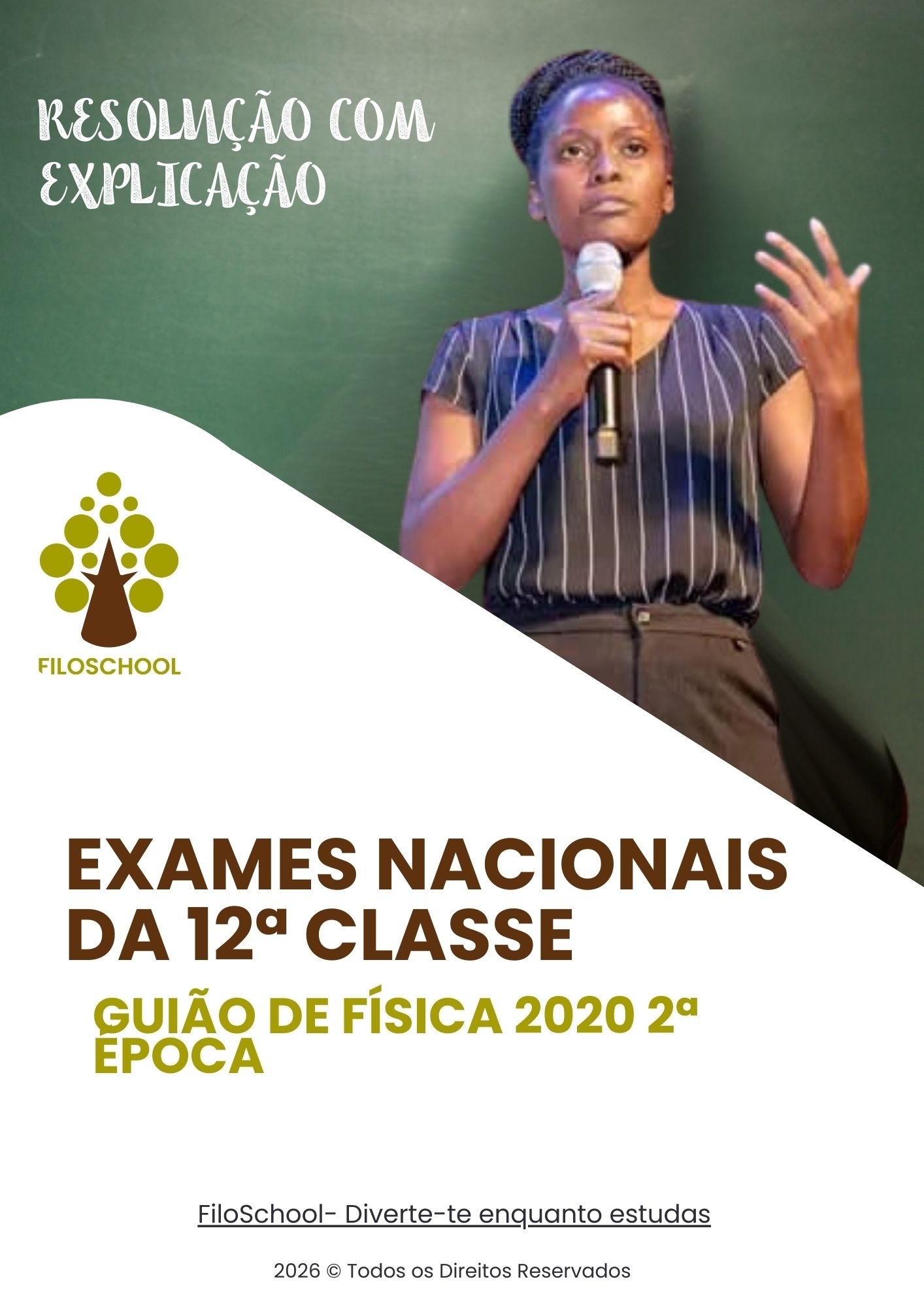 Este guião de correção detalhado, elaborado pela FILOSCHOOL para o Exame Final de Física da 12ª Classe de 2020 (2ª Chamada) em Moçambique, oferece uma revisão abrangente de conceitos fundamentais da disciplina. O documento aborda as propriedades das ondas eletromagnéticas, como a sua capacidade de propagação no vácuo e a relação inversa entre frequência e comprimento de onda , além de explorar as leis da termodinâmica, incluindo o equilíbrio térmico, radiações de corpo negro e transformações gasosas (isobárica, isocórica e isotérmica). Adicionalmente, o material detalha processos de física nuclear, como a distinção entre fissão e fusão e a identificação de partículas radioativas , a mecânica de fluidos através dos princípios de Bernoulli e da continuidade , e o estudo de oscilações mecânicas, focando em parâmetros como amplitude, período e equações de movimento harmônico